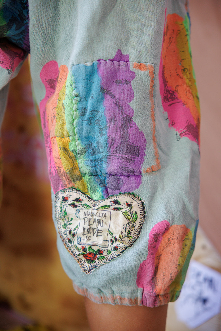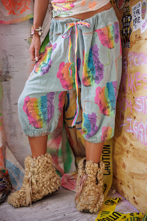 Памучни къси панталони Cali Sweat с графики, връзка на талията, ръчно избледняване и износване