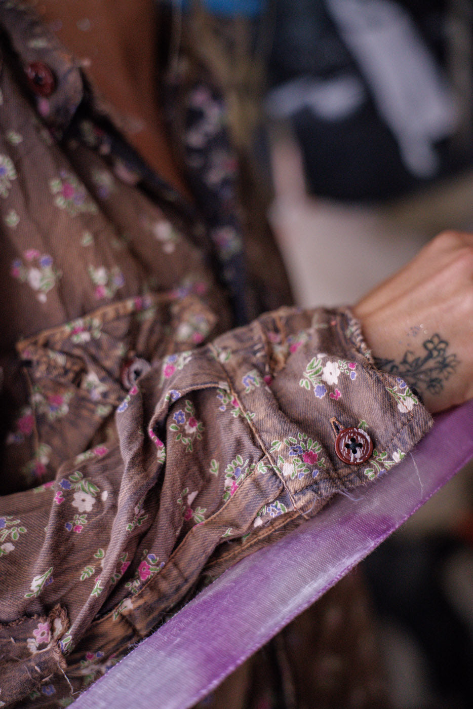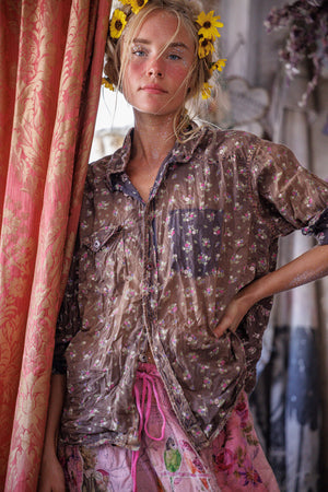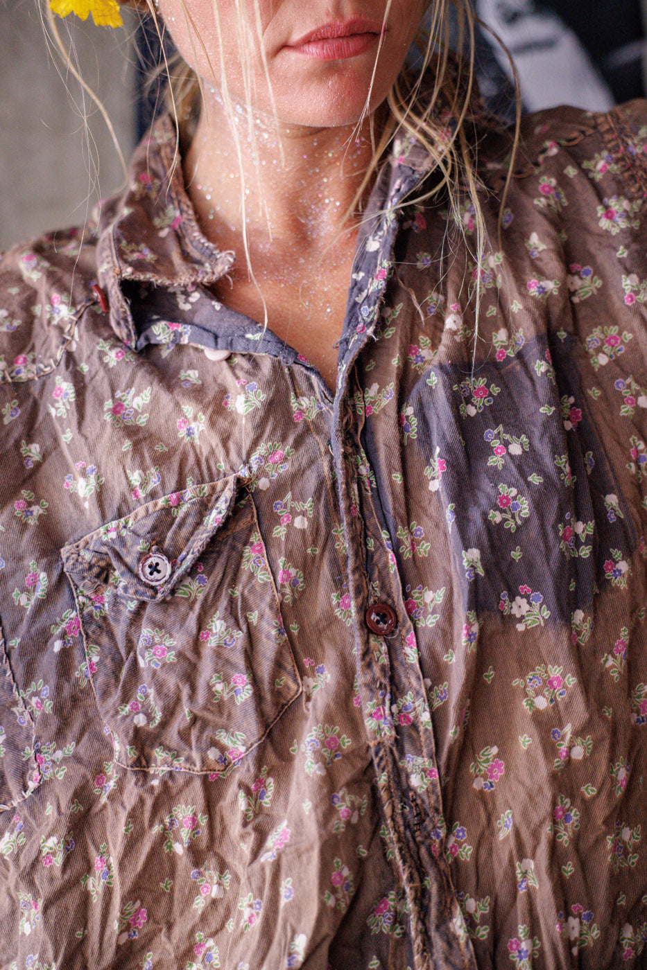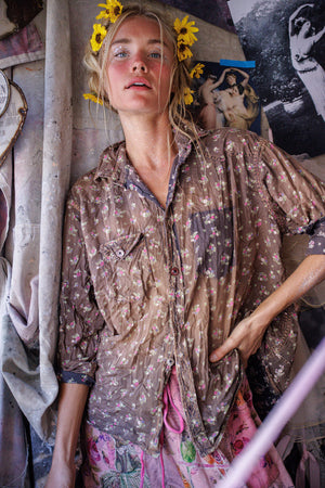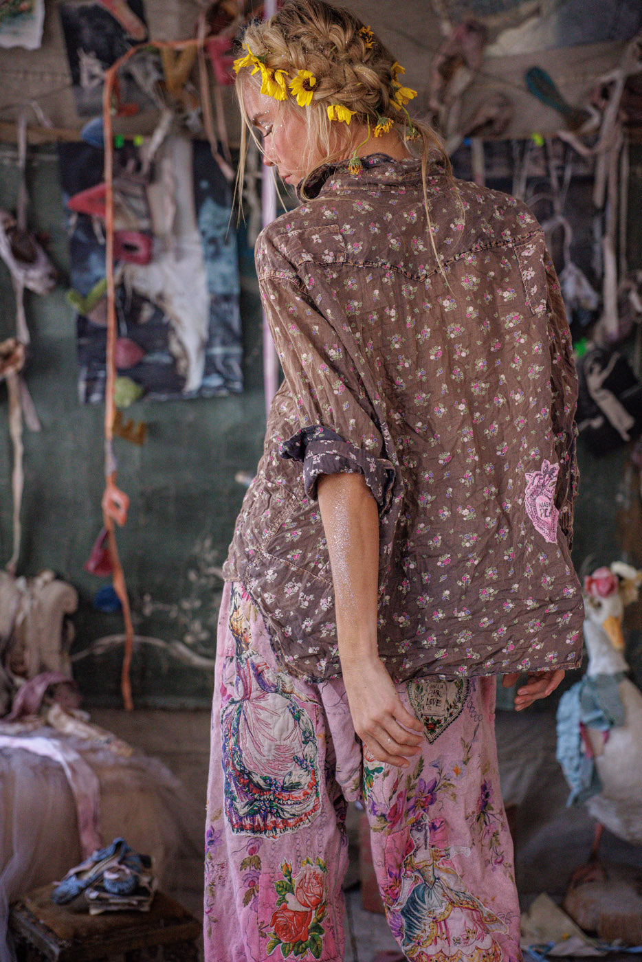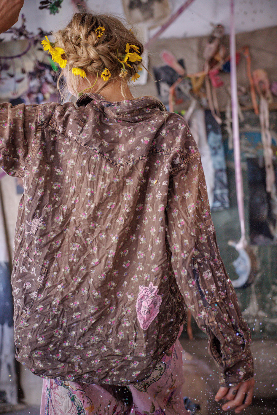 Европейска памучна западна риза на Кели с пръски боя, кръпки, поправки, ръчно избледняване и износване