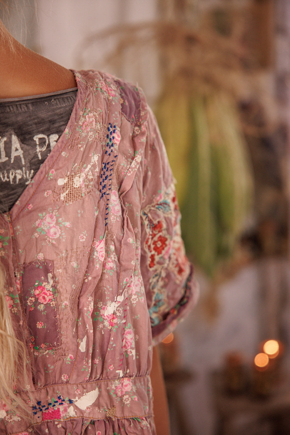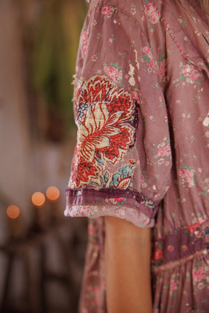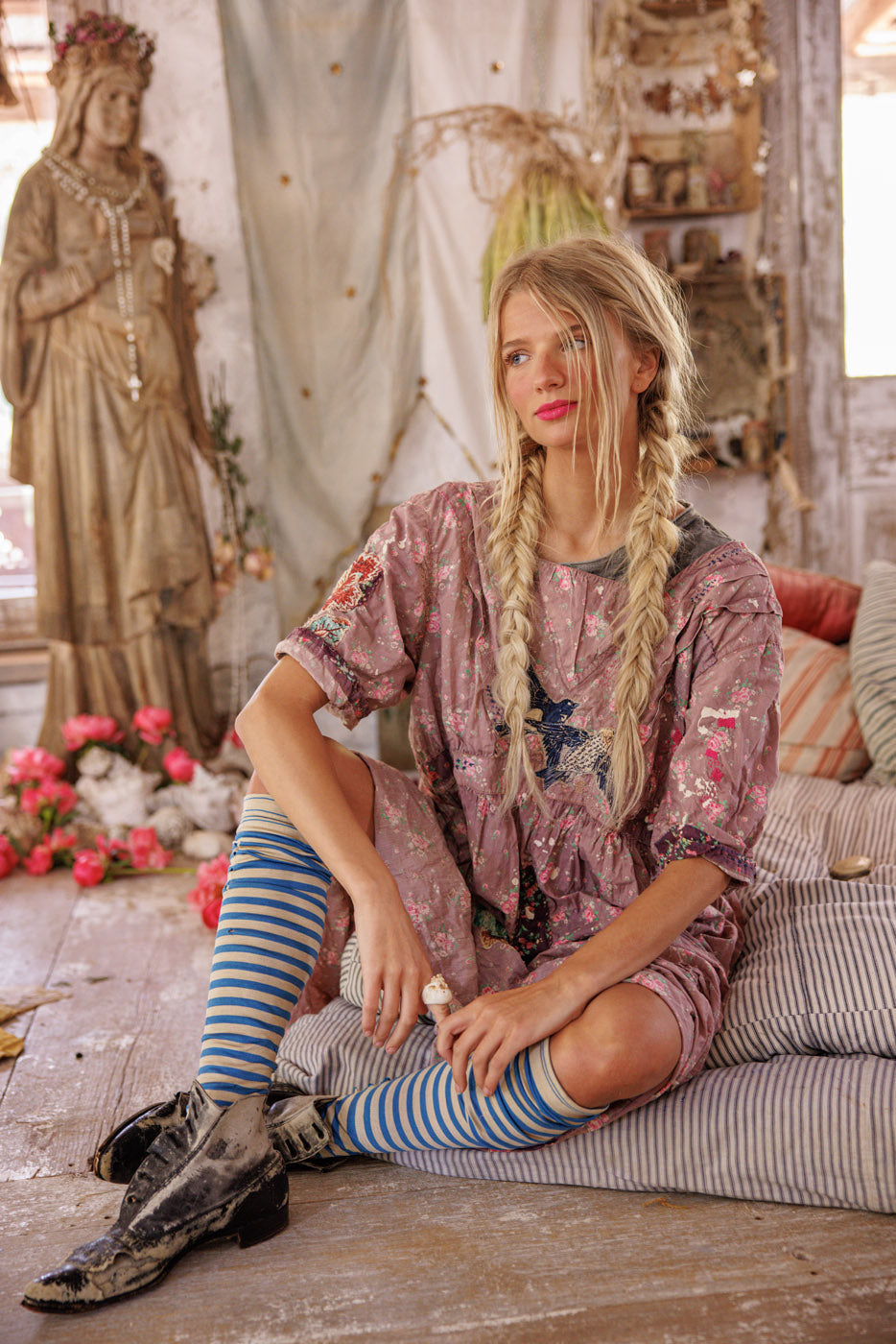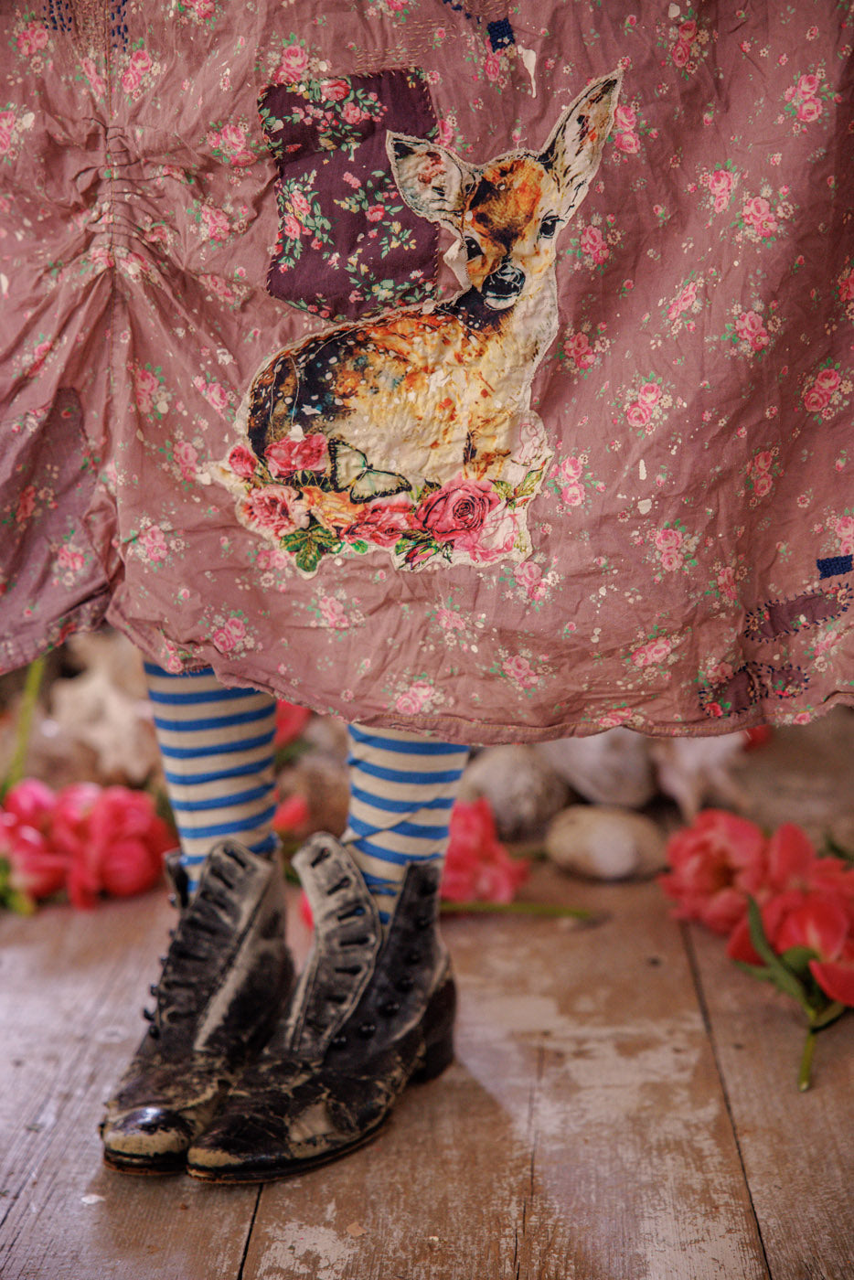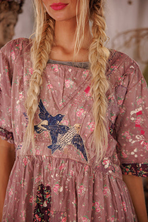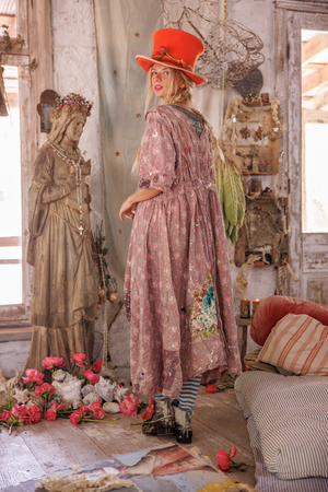 Европейска памучна рокля Starra на слоеве с апликации, пръски боя, кръпки, събирания, ръчно избледняване, поправки и износване