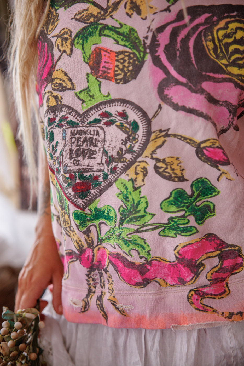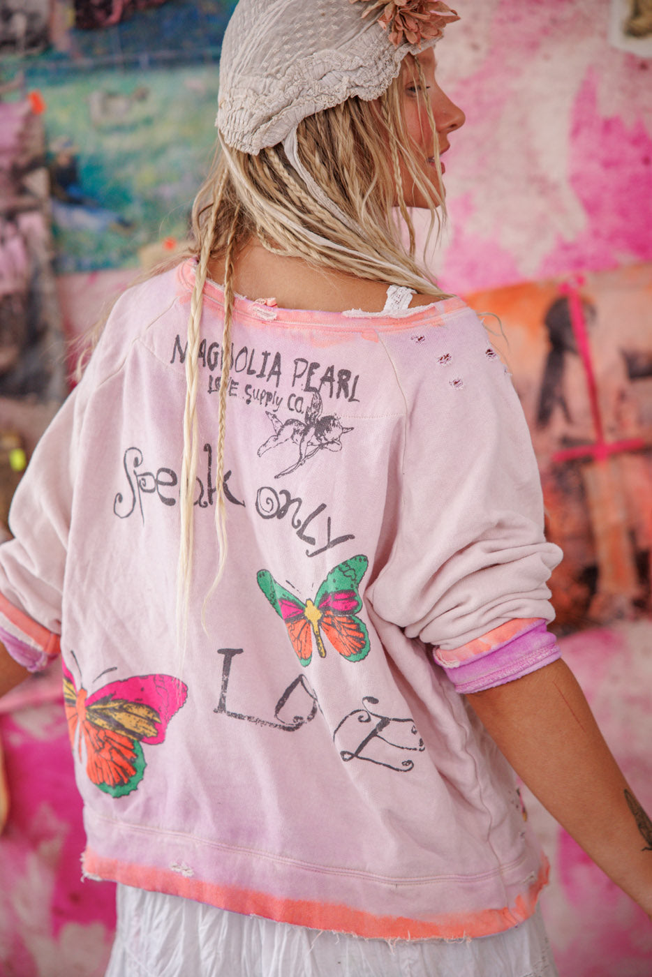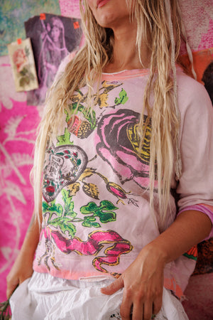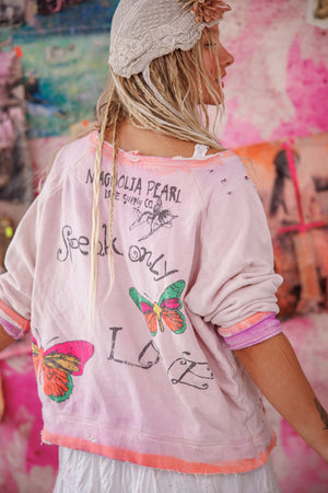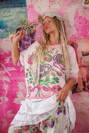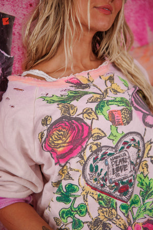 Cotton Fleece Victorian Posy Richi Sweatshirt with Hand Fading, Mending and Distress