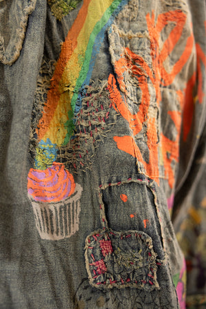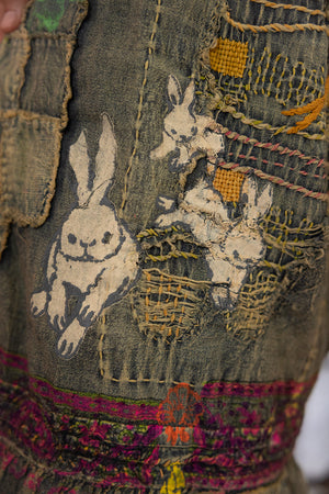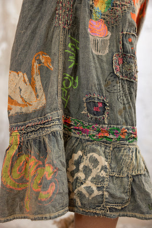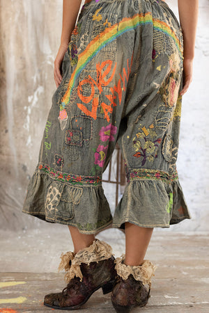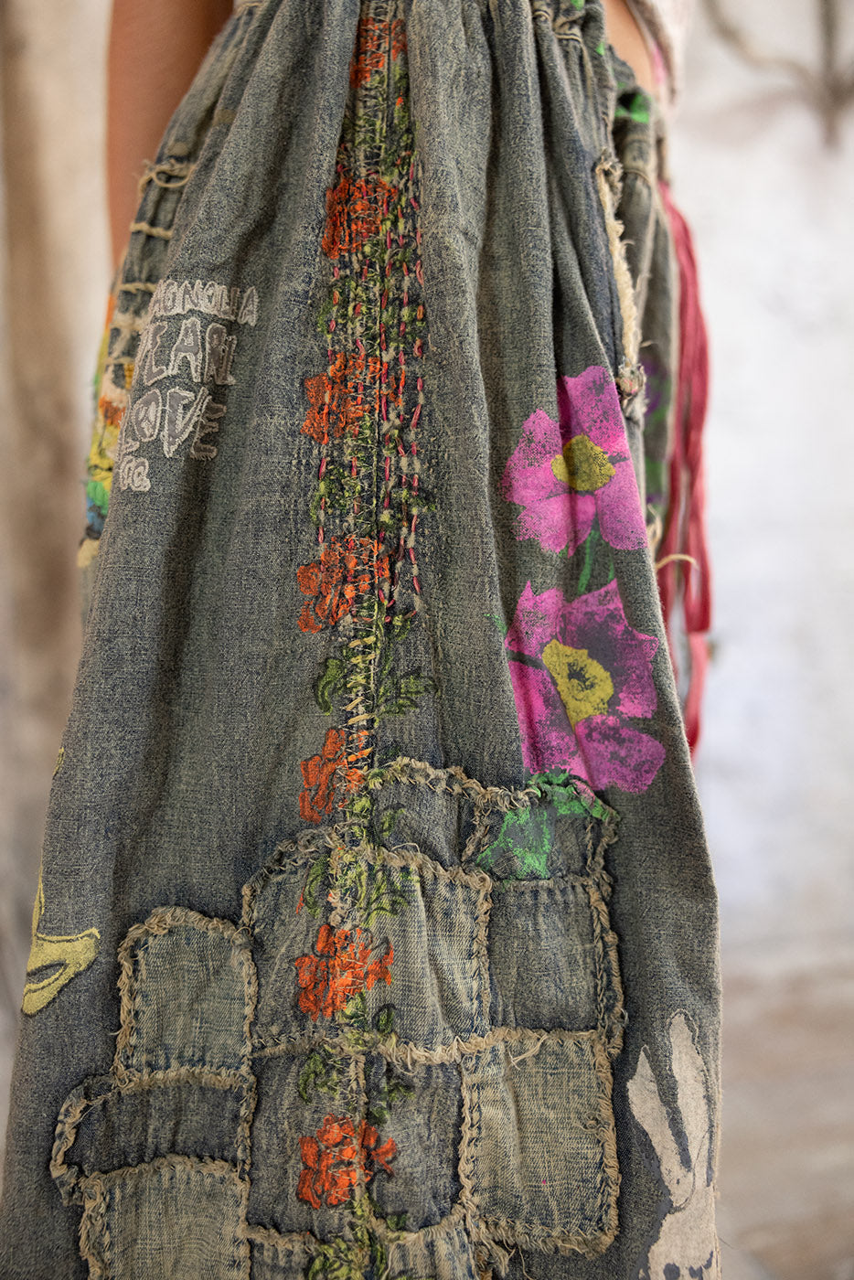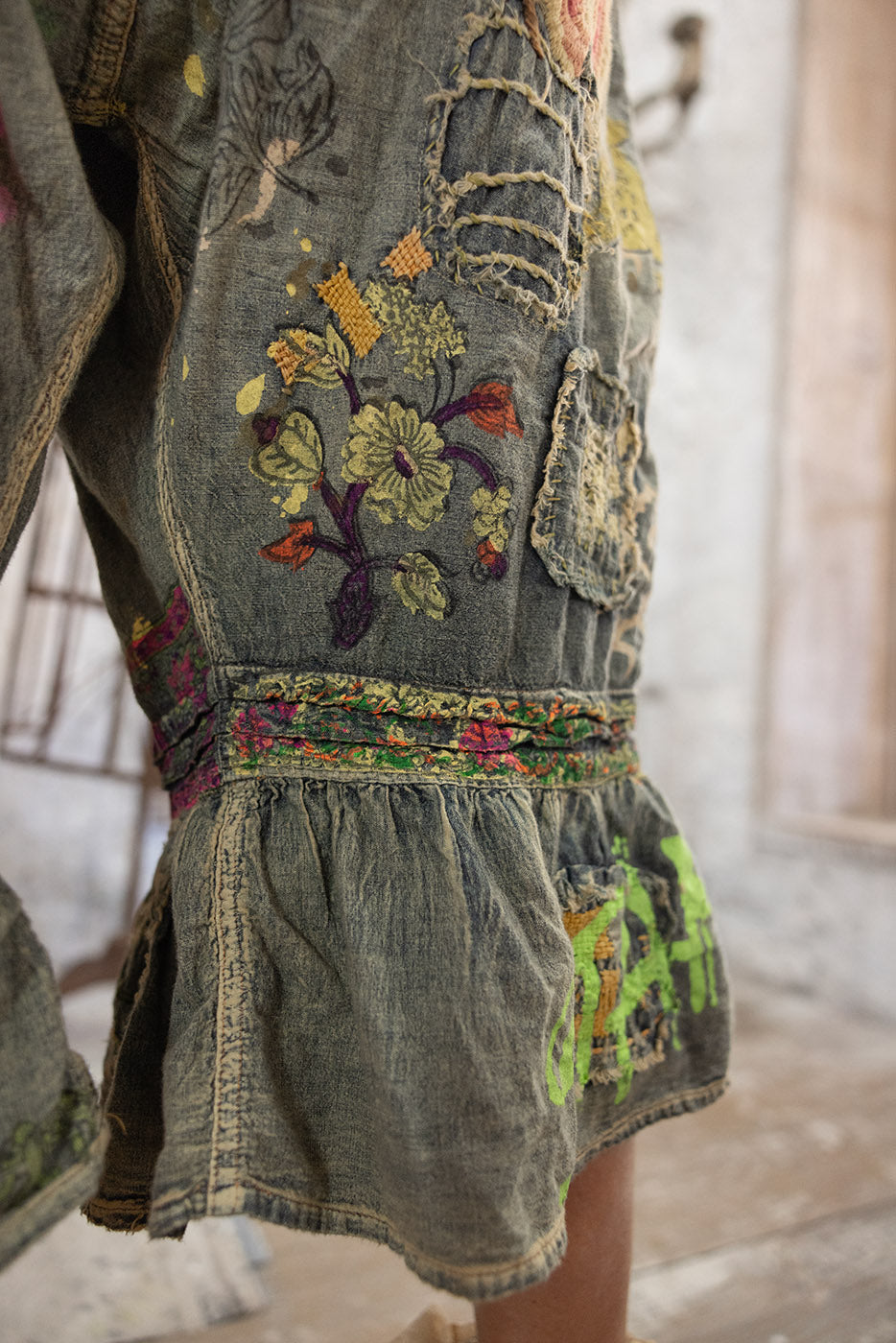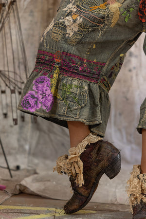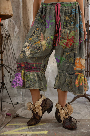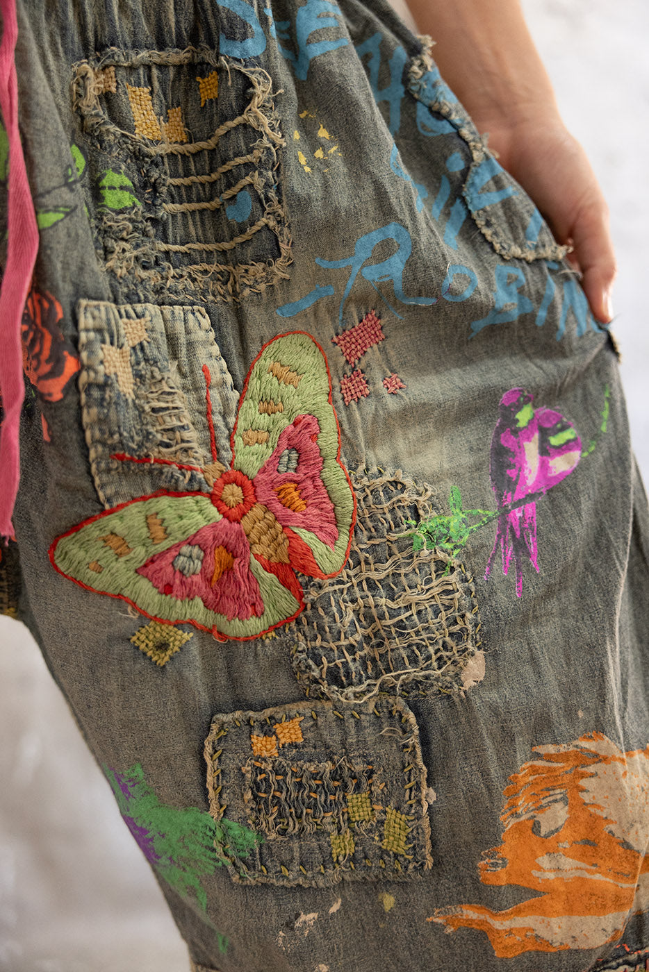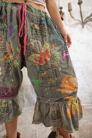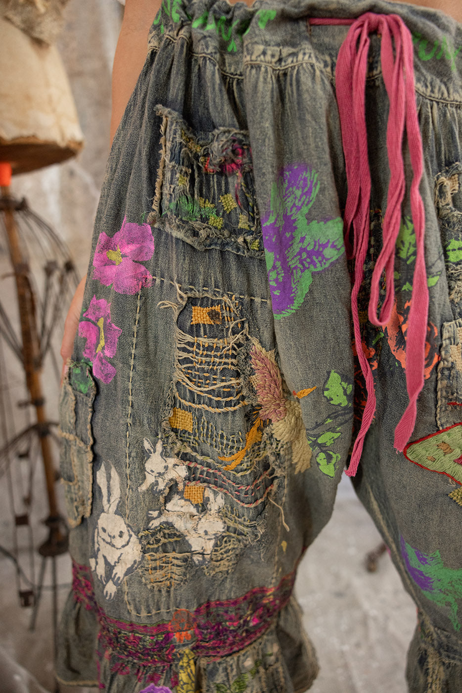 Cotton Embroidered Duchess Bloomers with Drawstring Waist, Patches, Hand Mending, Stitching, Fading and Distress
