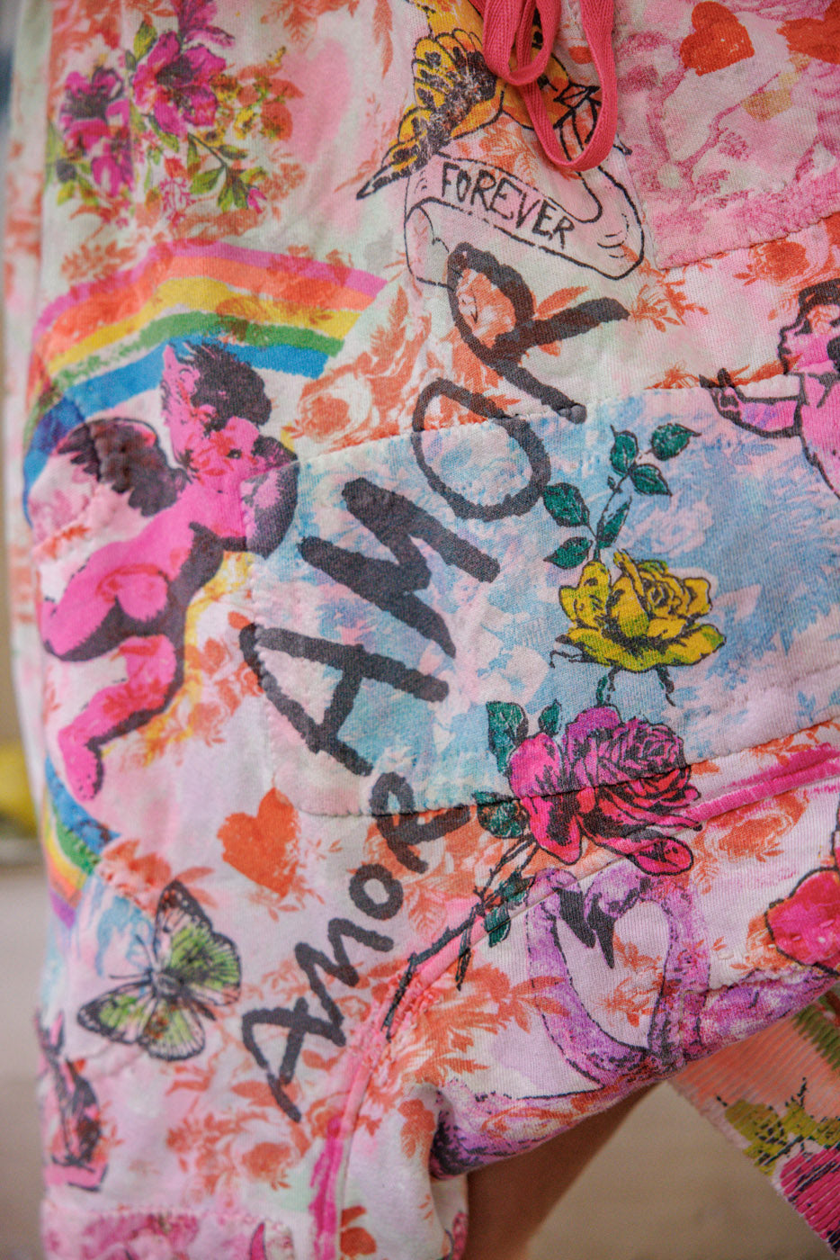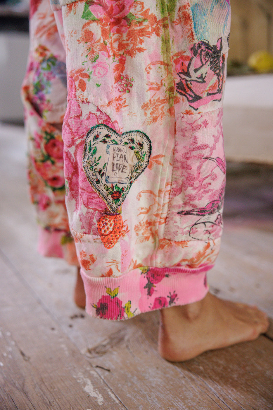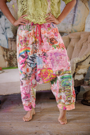 Bomuldsfleece Patchwork Robinas Magic Garcon Bukser med grafik og tie dye, snor i taljen, håndblegning og slid