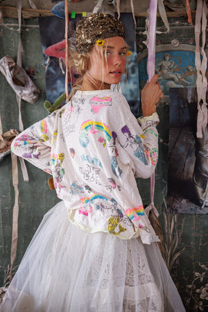 Cotton Jersey Love Letters Graffiti Viggo T, Boyfriend Cut, Hand Fading and Distress