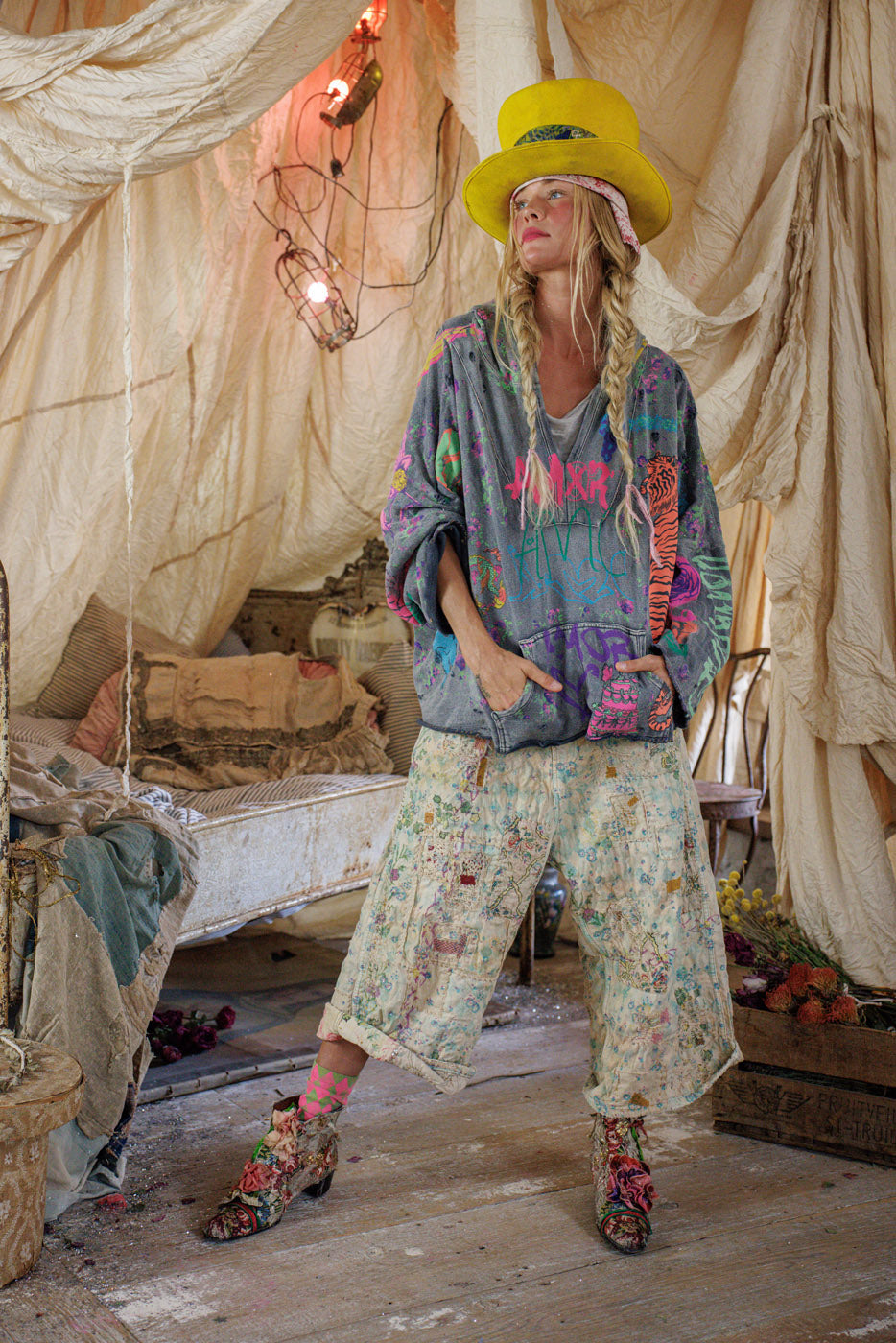 Sudadera con capucha Raji de forro polar de algodón con gráficos, bordes ásperos, desteñido a mano y desgaste