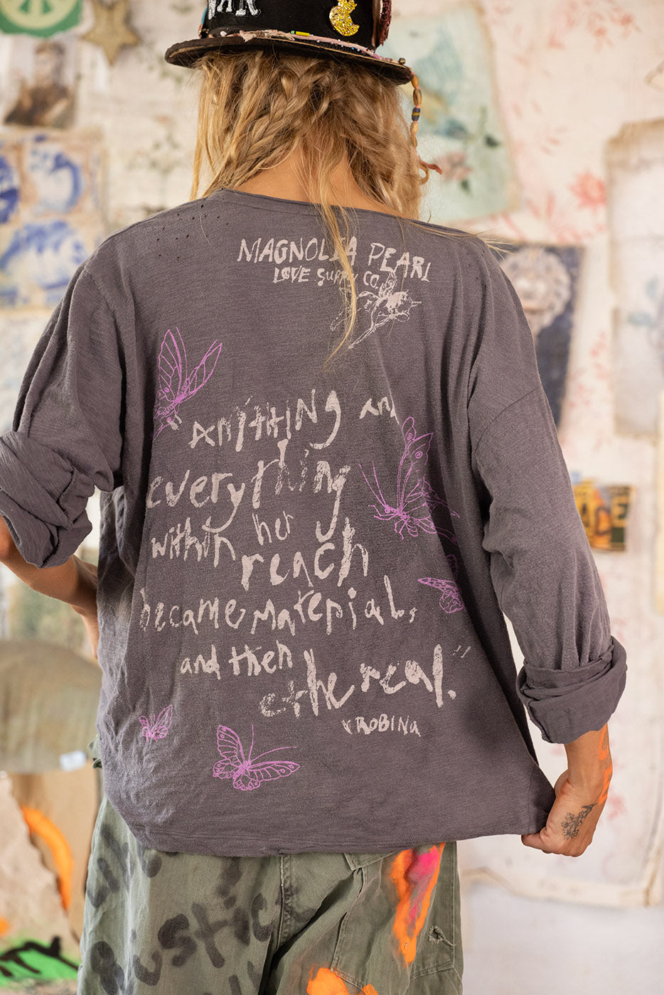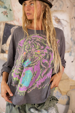 Visage de Tigre en Jersey de Coton Viggo T, Coupe Boyfriend, Décoloration et Détresse à la Main