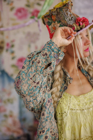 Chemise de travail en patchwork de coton européen Adison, boutons et pressions mélangés, réparation à la main, décoloration et usure