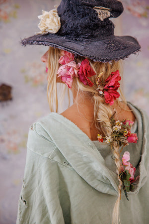 Felpa Bapu Fritza in pile di cotone con bordi grezzi, tasche oversize, effetto sbiadito a mano, rammendo e usura