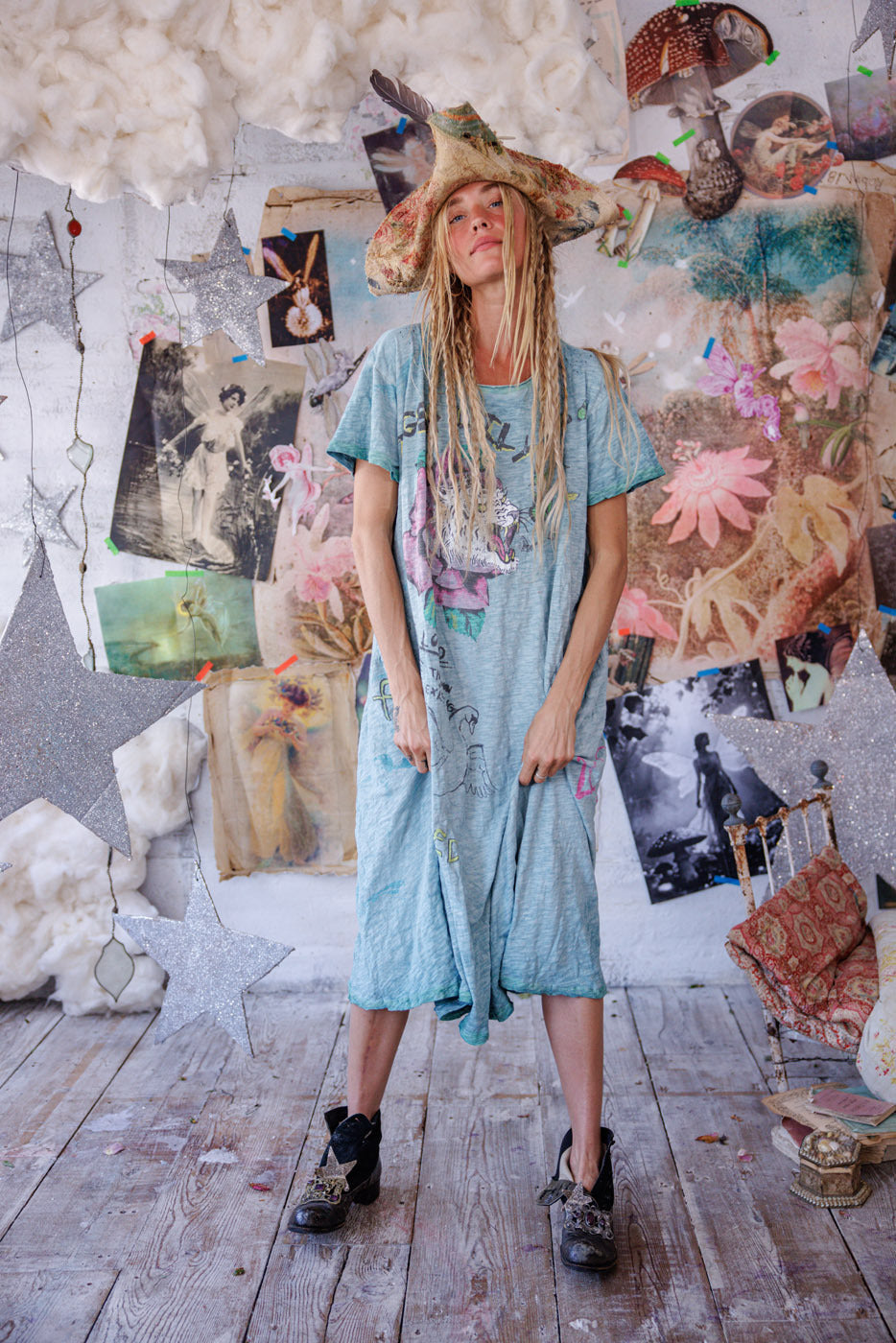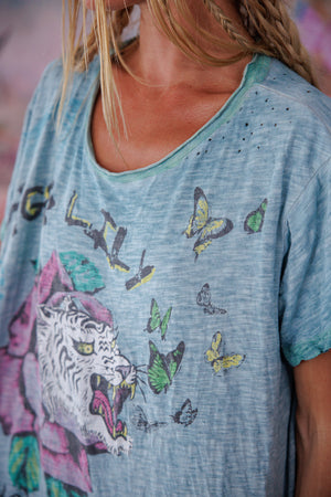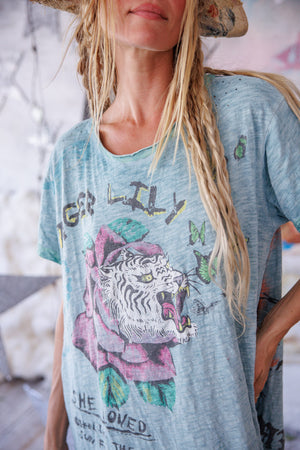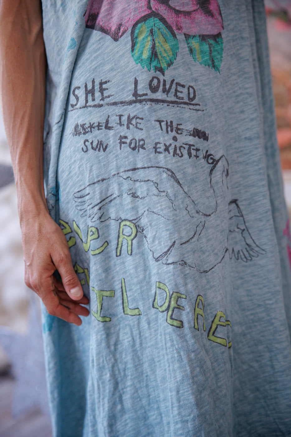 Vestito T in Jersey di Cotone Forever Bewildered, Taglio Boyfriend, Scoloritura e Distress a Mano