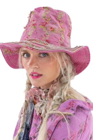 ヨーロピアンコットンフローラルヴィヴィエルトップハット、ローズリボンと手作業によるディストレッシング&フェイディング