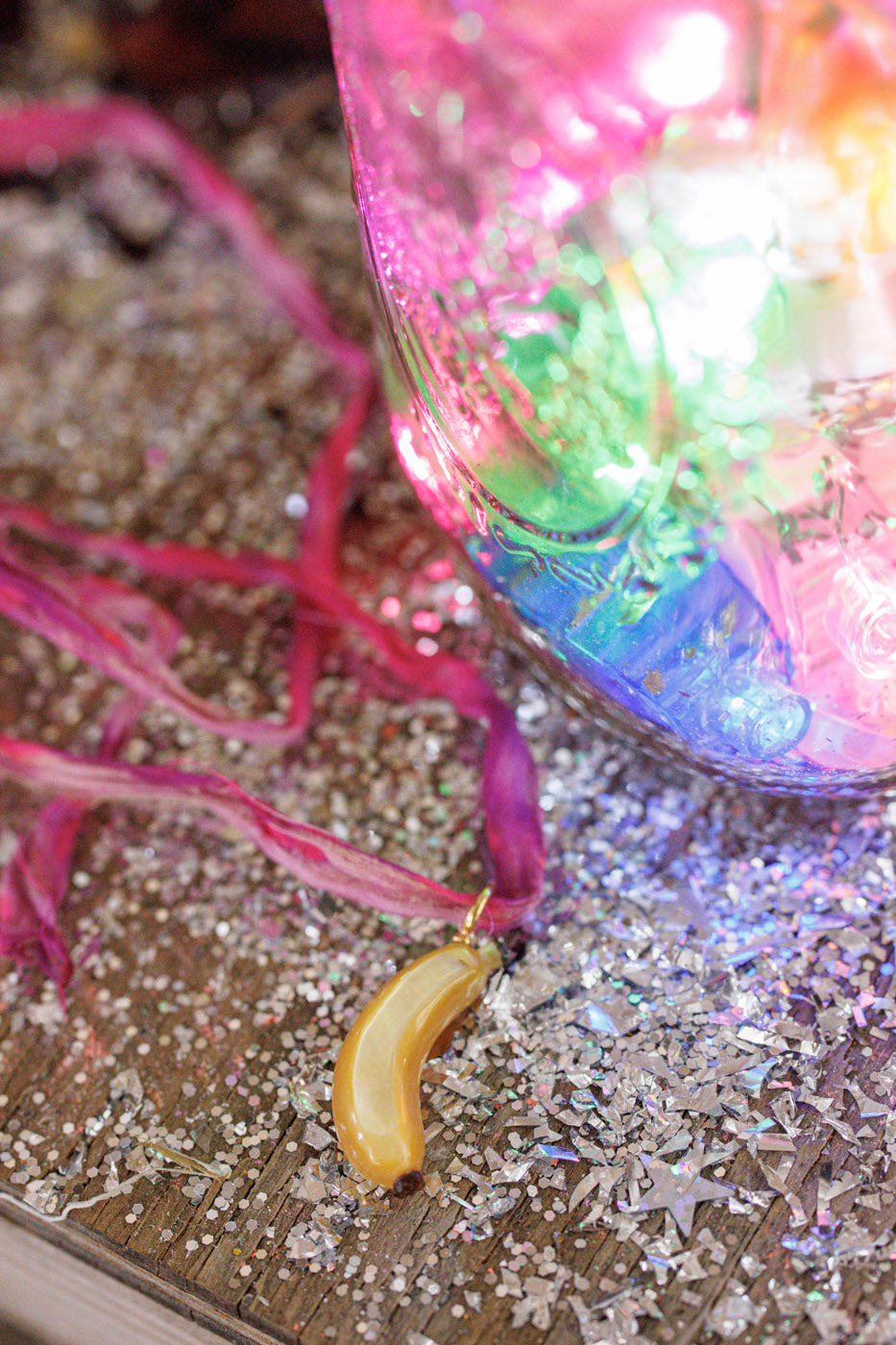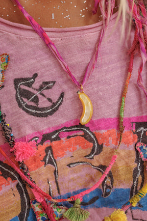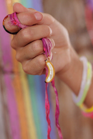 Rankų darbo motinos perlas, austrės kriauklė ir abalone banano pakabutis