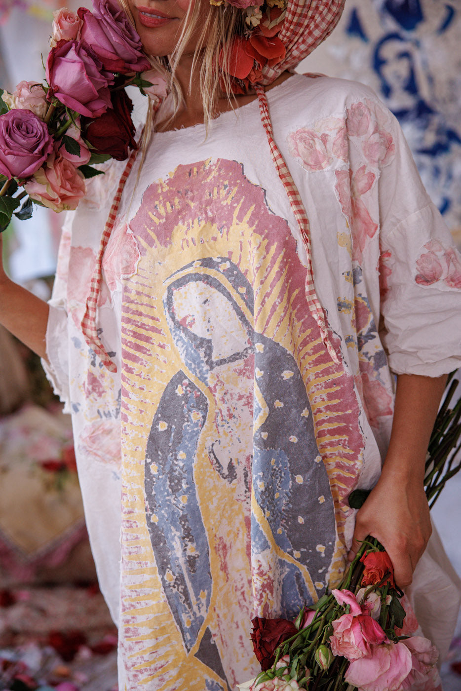 Królewskie róże zdobią naszą Sukienkę Artysty Amor, odpowiednią dla odważnej i łagodnej sprawy miłosierdzia dla wszystkich.