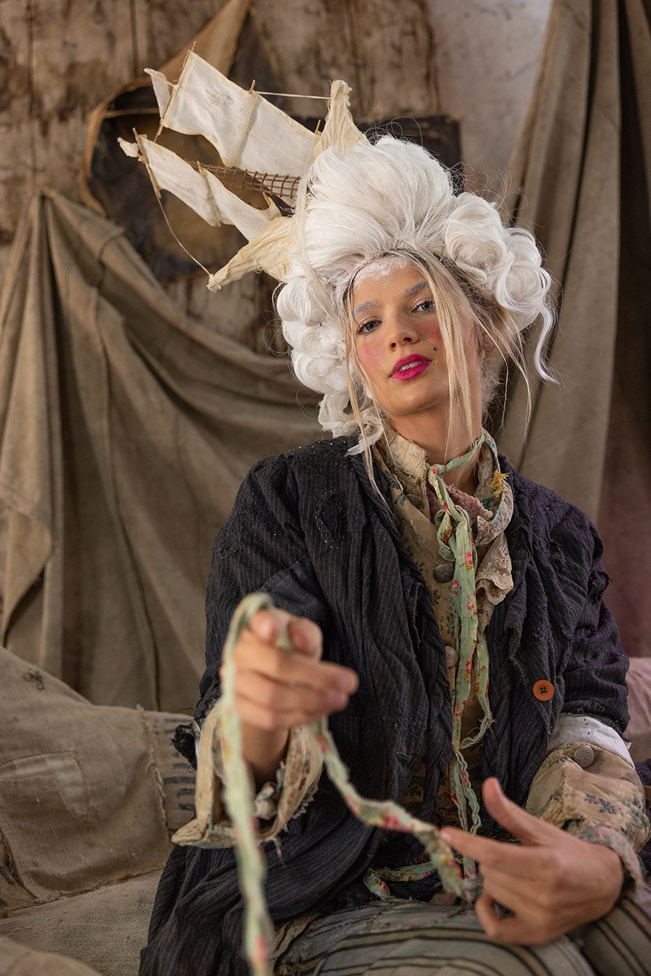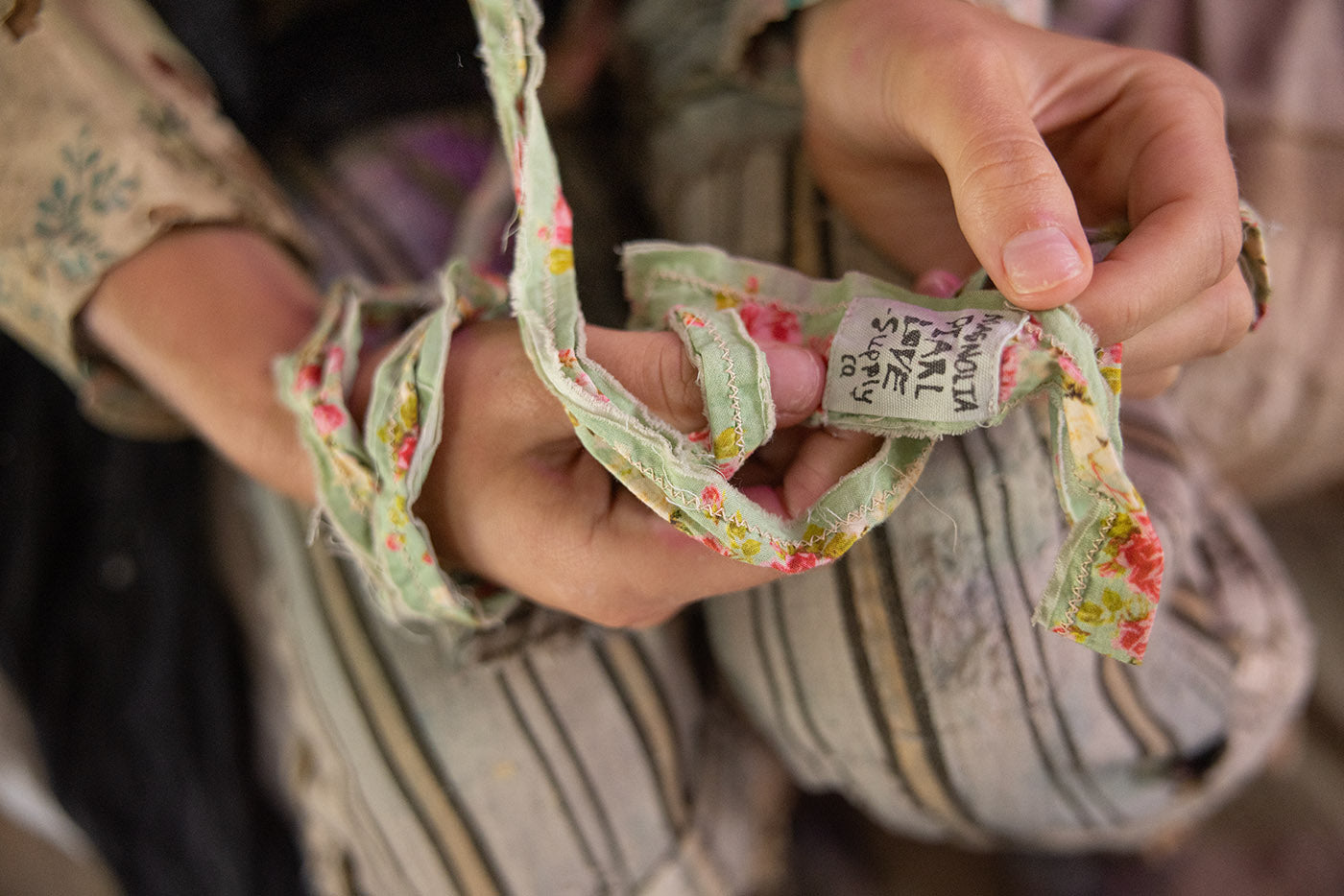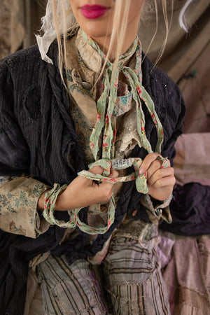 European Cotton Kaya Ribbon Accessoire with Hand Fading and Mending